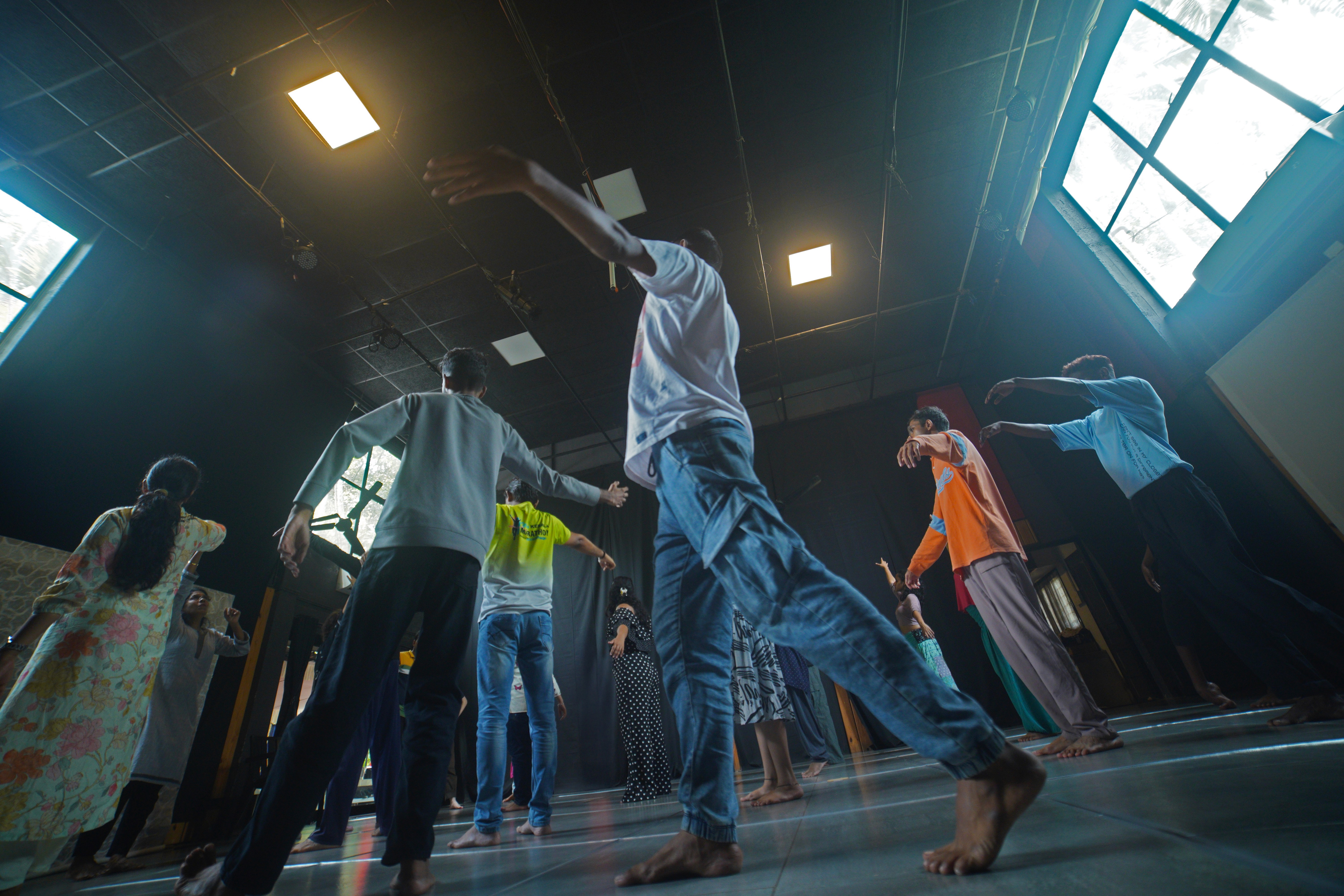 New performance skills involved training in the language(s) of acting with a focus on the multilinguality of Weavings: English, Malayalam, Indian Sign Language, and Braille in order to expand the communicative apparatus and understanding of all participants. Multisensory acting training in “theatre in the dark,” “visual and object theatres,” “touch-image theatres,” “accessible new media sound art and sound sculptures,” and “theatre games” lead to an innovative creative collaborative workshop, rehearsal, and performance space. “Sense Methods”—a system that blends the use of mudras, ISL, and touch ensured that no one sensory system was privileged, and that storytelling-through-movement was foregrounded. Further skill development in collaboration, interdisciplinary arts practices, intercultural performance, accessible music, and accessible rehearsal techniques further enhanced capacities for understanding, empathy, dialogue, and creativity. A unique feature of this project was the exploration of games as activities for ensemble-building as well as devices for advancing the storytelling through interactive approaches.